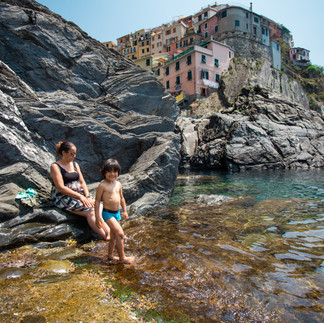Après 10 petites minutes de train nous voilà arrivés à la gare de Manarola, un village incoyablement mais avec beaucoup de monde. Cela nous décourage pas les enfants pour aller faire un saut dans les eaux transparentes. Ni une ni deux nous voilà déja en bord de l'eau mais l'avantage de ce village par rapport à Vernazza et que la plage est gratuite mais aussi il y à différent accès pour aller se baigner. Nous, comme d'habitude nous y allons au feeling et encore une fois ça a bien marcher car nous voilà trouvés une petite place dans la marina où nous pouvons nous baigner, sauter dans depuis les hauts rochets. Cet endroit est vraiment incroyable car encore une fois nous avons ce sentiment de liberté que nous aimons tant.
