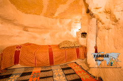 À Chenini vous avez à votre disposition un gite en demi-pension, l'hôtel résidence Kenza Chenini est à l'image de ce village où vous aurez la chance comme nous de dormir dans une chambre creusé dans la montagne où il fait chaud l'hiver et frais l'été sans climatisation et sans chauffage… Les chambres peuvent accueillir jusqu'à 6 personnes pour un nombre total d'environ 30 voyageurs.